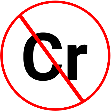 None of our products contain Chromium or any other environmentally-harmful substance and our proud to say that our products are created with durability, recyclability and in respect of the environment.